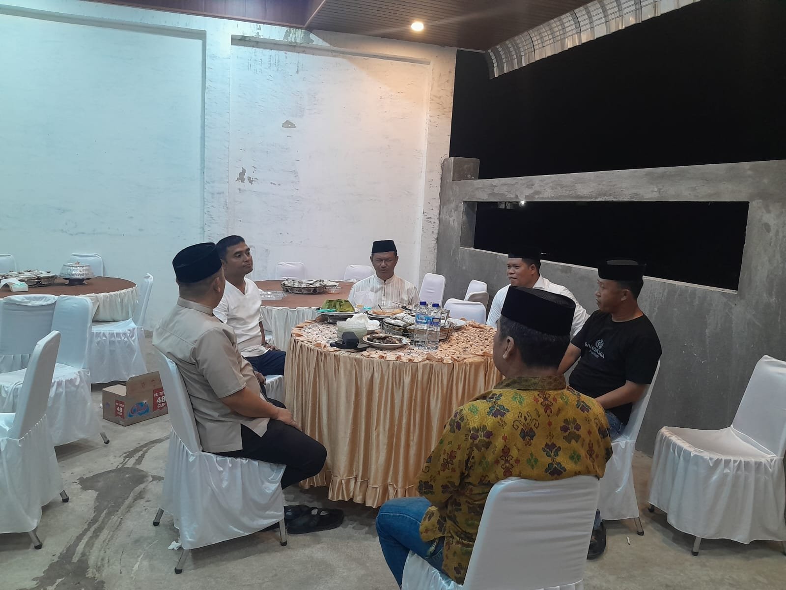 Suasana kebersamaan terlihat saat para tamu undangan saling berbincang dan menunggu waktu berbuka puasa bersama.